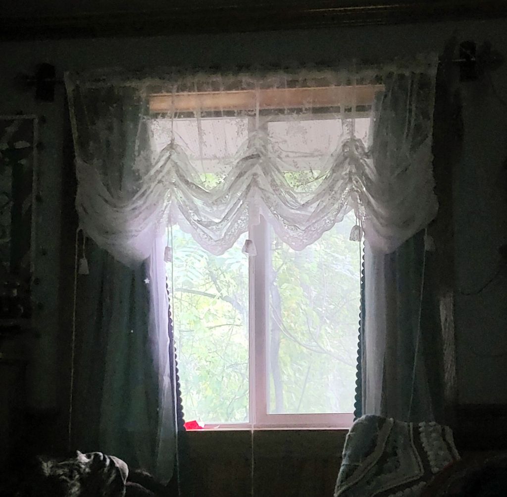It started with my bedroom. I got a few curtains and a film that creates rainbows all over the walls when the sun shines through. I LOVE IT! It is so lovely and cozy! I also learned that the curtains, while gauzy, also keep out the cold! I can enjoy the sunlight during the winter without worrying about the change the temperature would cause my heating bill. I got another set and did the other side. It’s transformative!