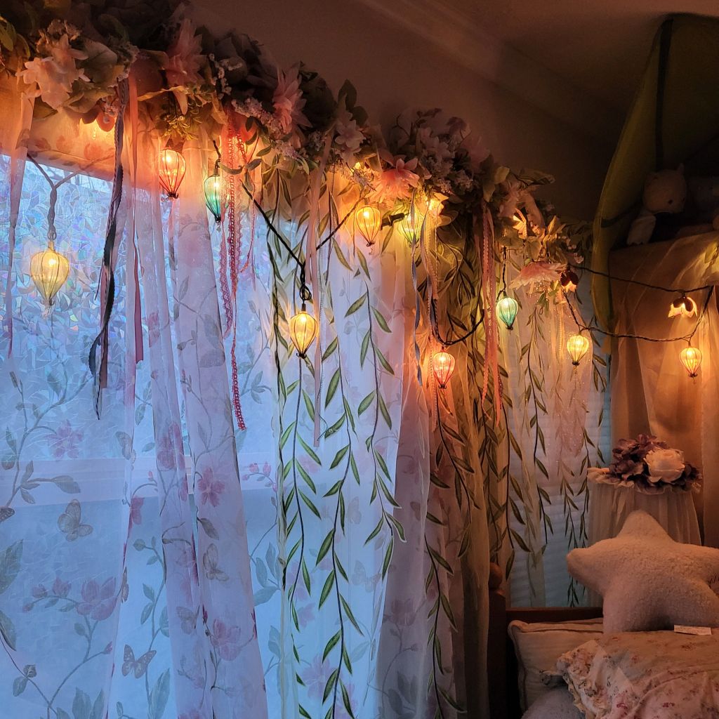 The next room for decorating will be my bathroom. I have hated that room since day one and have been wanting a change for a long time. I am planning on making it like a mossy glade, painting it in a light shade of green, pink, gold, and white. I want to get an antiqueish vanity to turn into a skin, get new flooring down, and new lighting. I have started creating the decor for it and am excited to get those going. I would like to eventually expand the bathroom so that I can put in a soaking tub as the one there now is way too small and uncomfortable. I want to make the walk-in closet a hall to the bathroom, with the expanded space for the bathroom. At the same time, I’m wanting to get rid of the bedroom door and put in a hidden door where the closet is in the entryway and my bedroom, as that closet space isn’t really needed. I want to make it a lovely sitting room where my faux fireplace and Elmer will reside with a comfy chair and small side table. A couple of Victorian style wall sconces with light, and it will be perfection. These things are in the future. I am just now starting to look and assemble the things I want for everything. I just got the appliances to make the hidden door, so now I’m in search of a bookshelf or another type of furniture that I can put on wheels and turn into the door.